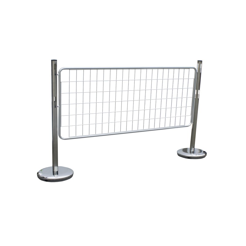 Kit of steel posts with wire mesh for separating and creating access areas. The kit is composed of 2 posts and 1 grille. Made of stainless steel. Each post has a weighted base and a threaded head, suitable for A3 or A4 information panels (available as an option). Very easy to install.