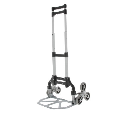 3-wheel hand truck designed for transporting heavy and bulky loads, including on stairs. Equipped with three polypropylene wheels with TPR tread, 100 mm diameter on each side and with an aluminum frame, caracteristics: