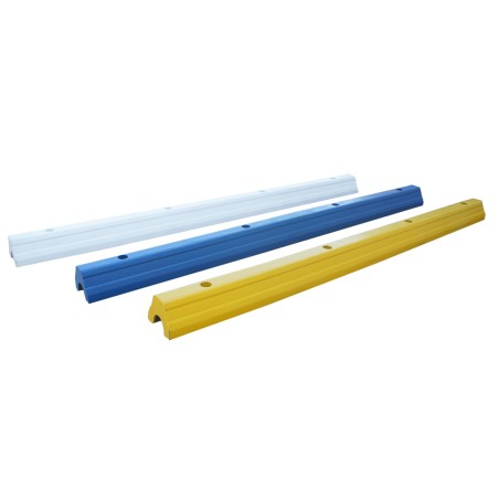 Parking stop ideal for securing and marking parking spaces and separating traffic lanes. Its length and color make it highly visible even from a distance. Made of thermoplastic, it resists grease and acids. Supports temperatures from -40 to +60°C. Concrete or asphalt fixings not included. Available in several colors