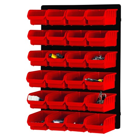 Panneau d'atelier fabriqué en polypropylène permettant le rangement des outils et des accessoires de bricolage. Possède 28 bacs, 10 crochets, 2 supports d'outils universels, 1 support tournevis. Il est livré clés en main : bacs, porte-outils et fixations. Vendu sans outils